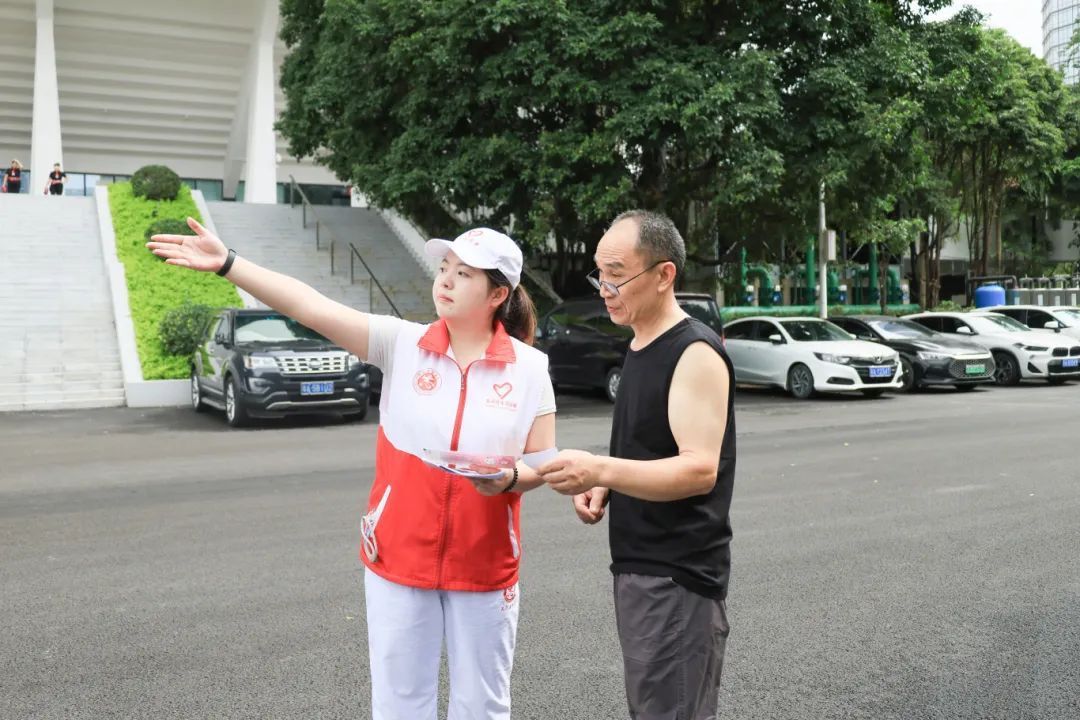 巡岗途中,一位初到天河体育中心的观众焦急地拦住我:“这个区该怎么走?”我仔细辨认他手中的门票信息,迅速指向南门:“您从南门进,过了检票口直走便是。”他连声道谢,身影匆匆汇入人潮。稍后回到大本营稍作休整时,又有游客探头询问:“里面在进行什么比赛呀?”我立刻报出正在激战的比赛名称和下一场的开赛时间。每一次困惑得以解答后舒展的眉头,都如微风吹过心湖,漾起暖意。