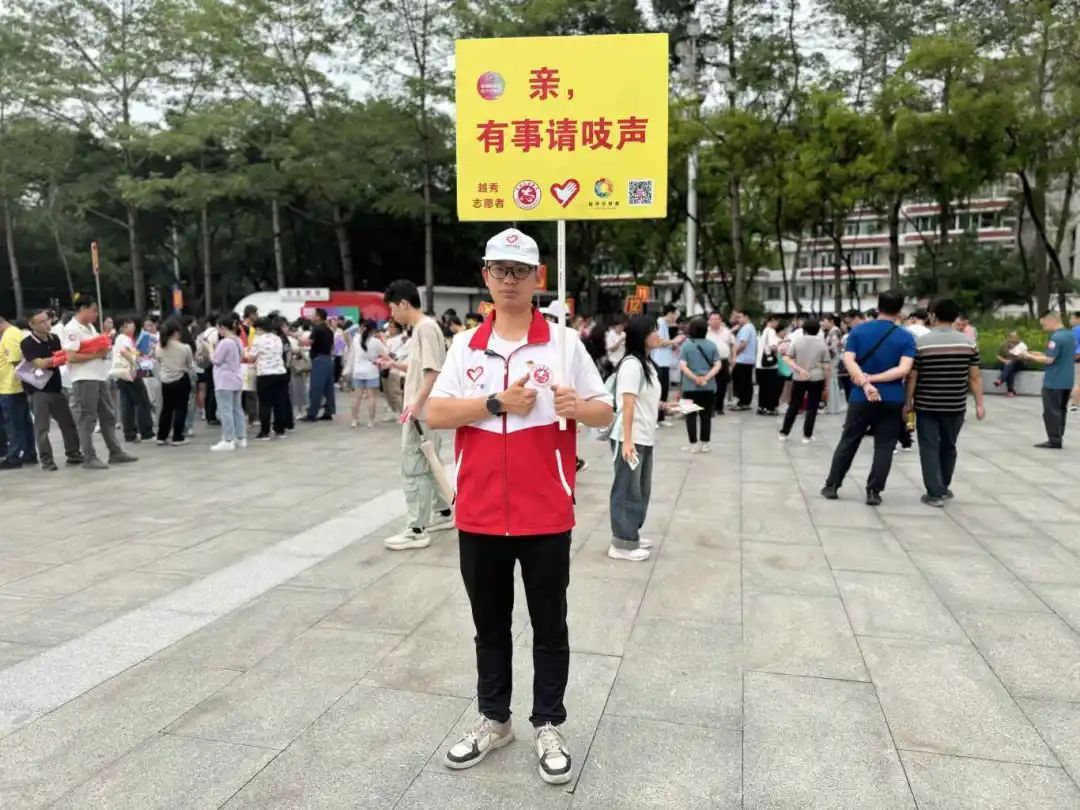 比赛日的下午,人流高峰如期而至。我随着社工姐姐带领小伙伴运送着水和物资,开始巡查各出入口。在东西门两侧的指引岗,将沁凉的瓶装水递给汗流浃背的伙伴,一句“辛苦了”,总能换来他们疲惫却依旧明亮的笑容。确保每个岗位如齿轮般顺畅运转,是领队最核心的使命。